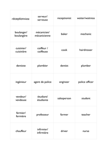 Jobs Masc Fem E H In French Worksheets Games Activities And Flash Cards 2
